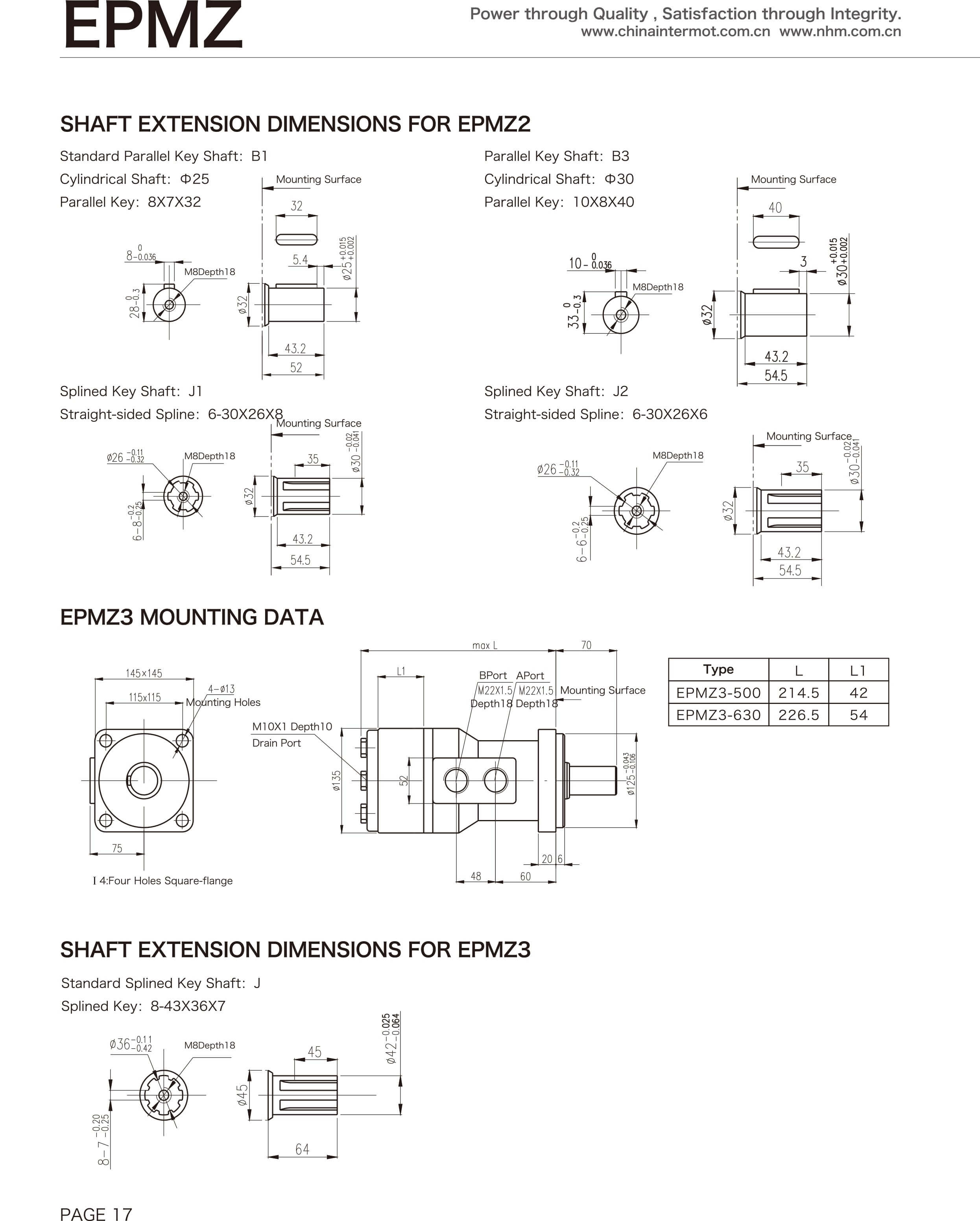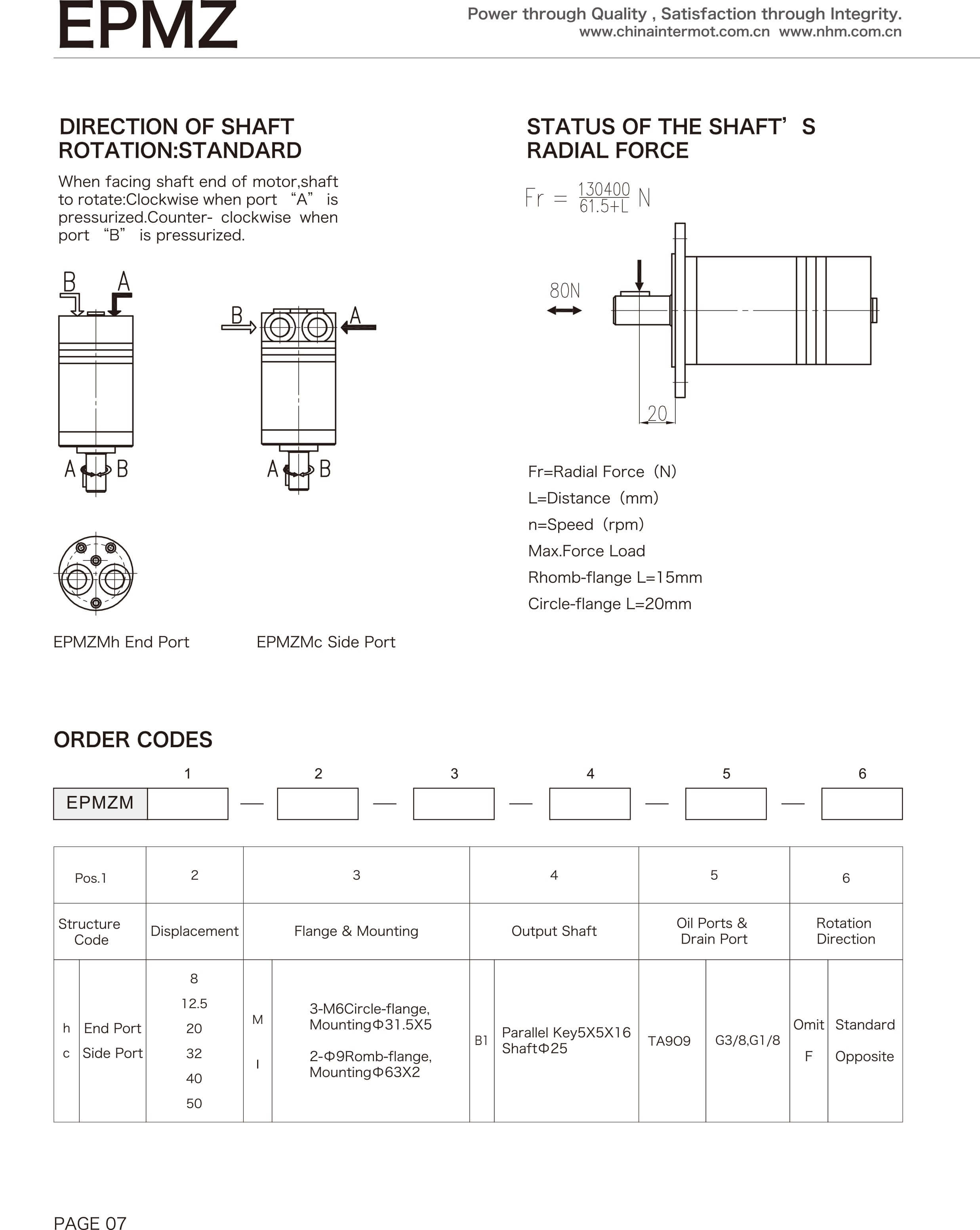 The INTERMOT EPMZ Category is a type of Low Speed High Torque (LSHT) Hydraulic Motor developed based on the orbit principle and planetary cycloid transmission mechanism, where an internal gear is engaged with a fixed planetary gear. The EPMZ design is known for its high power efficiency, low-speed reliability and economic performance. EPMZ array of products feature both axial distribution and disc distribution, to fulfill the customers’needs in various applications in plastic injection mould adjusting,grinders, sprayers, augers and other construction machinery, agricultural equipments, hoisting equipments etc...Within the EPMZ category, there are EPMZM, EPMZ, EPMZR, EPMZ1, EPMZH, EPMZ2, EPMZ3, EPMZS,EPMZY, EPMZT & EPMZV series of motors, with diversified structure and technical features to fulfill the specific application requirements of the customers.